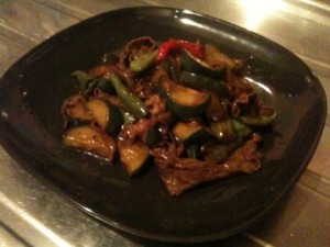 玉葱と牛肉でつくったオイスター炒め。